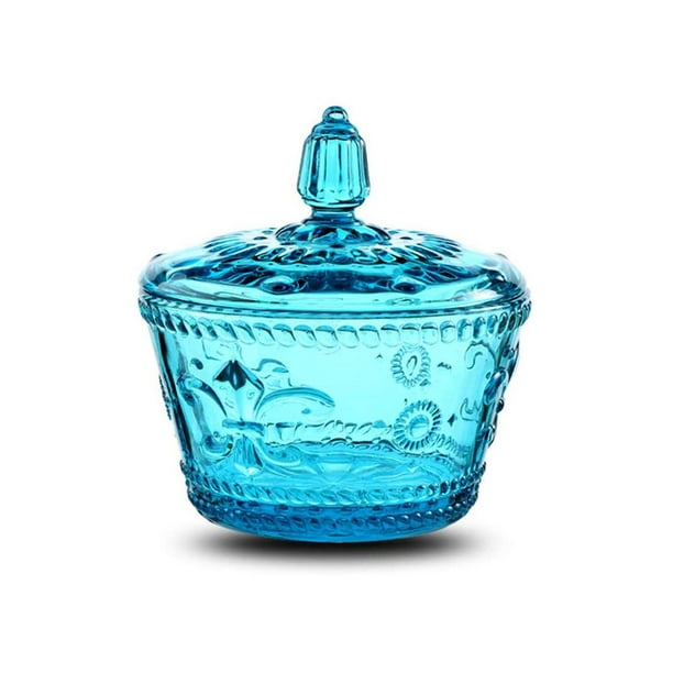 Colorful Embossed Glass Candy Jar With Lid 10 Oz Blue Walmart Com